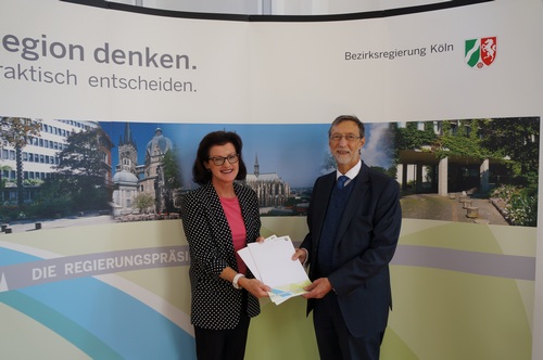 Foto: Bezirksregierung Köln / Hat in Köln den Zuwendungsbescheid aus den Händen von Regierungspräsidentin Gisela Walsken entgegengenommen: Aachens Planungsdezernent Werner Wingenfeld.