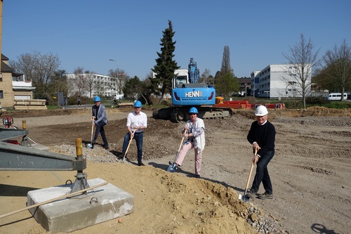 Auf dem Gelände der ehemaligen Kirche St. Michael ist der erste Spatenstich für den Bau einer neuen Kindertagesstätte gefallen. Die Kita an der Dechant-Kirschbaum-Straße wird insgesamt 5 Gruppen beherbergen. Dabei steht insgesamt eine Nettoraumfläche von 1.227 m² zur Verfügung. Im Rahmen des schonenden Umgangs mit dem immer knapper werdenden Grund und Boden wird die neue Einrichtung auf 2 Etagen errichtet und mit einem Aufzug ausgestattet.