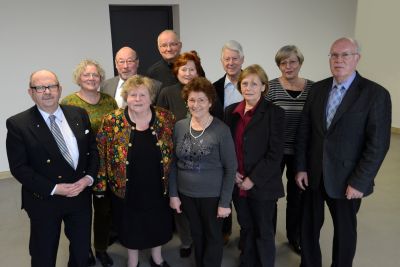 Bildunterschrift: Vordere Reihe (von rechts): Rolf Eckert, Sigrid Sick, Wilhelmine Boßhammer, Caroline Reinartz und Dr. Willy Foellmer.
